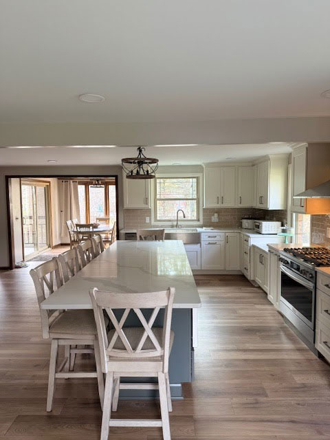 "We recently had the pleasure of working with Jim and his crew at Revive Renovators for a major renovation of our kitchen and bathroom, and we couldn’t be happier with the results. From the initial design phase to the final touches, their work was exceptional. Jim’s team was not only skilled in every aspect of the renovation—from construction and custom work to electrical and plumbing—but they were also incredibly respectful and helpful throughout the process. They often found and fixed unexpected issues mid-job, which saved us a lot of hassle. One of the most impressive aspects of working with Revive Renovators was their commitment to minimizing disruption. Major renovations can often throw your life into chaos, but Jim’s crew did their best to keep things running smoothly and cleaned up every day before they left. Having a team that could handle everything, including creating custom butcher block countertops, was incredibly convenient. We didn’t need to call in any other specialists, which made the entire process much more streamlined. We are thrilled with our new kitchen and bath and will definitely be using Revive Renovators for all our future home repair and improvement needs."